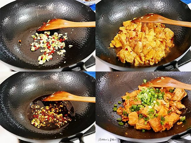 Thật không ngờ, trứng và đậu phụ kết hợp với nhau lại cho ra một món trôi cơm bất ngờ.