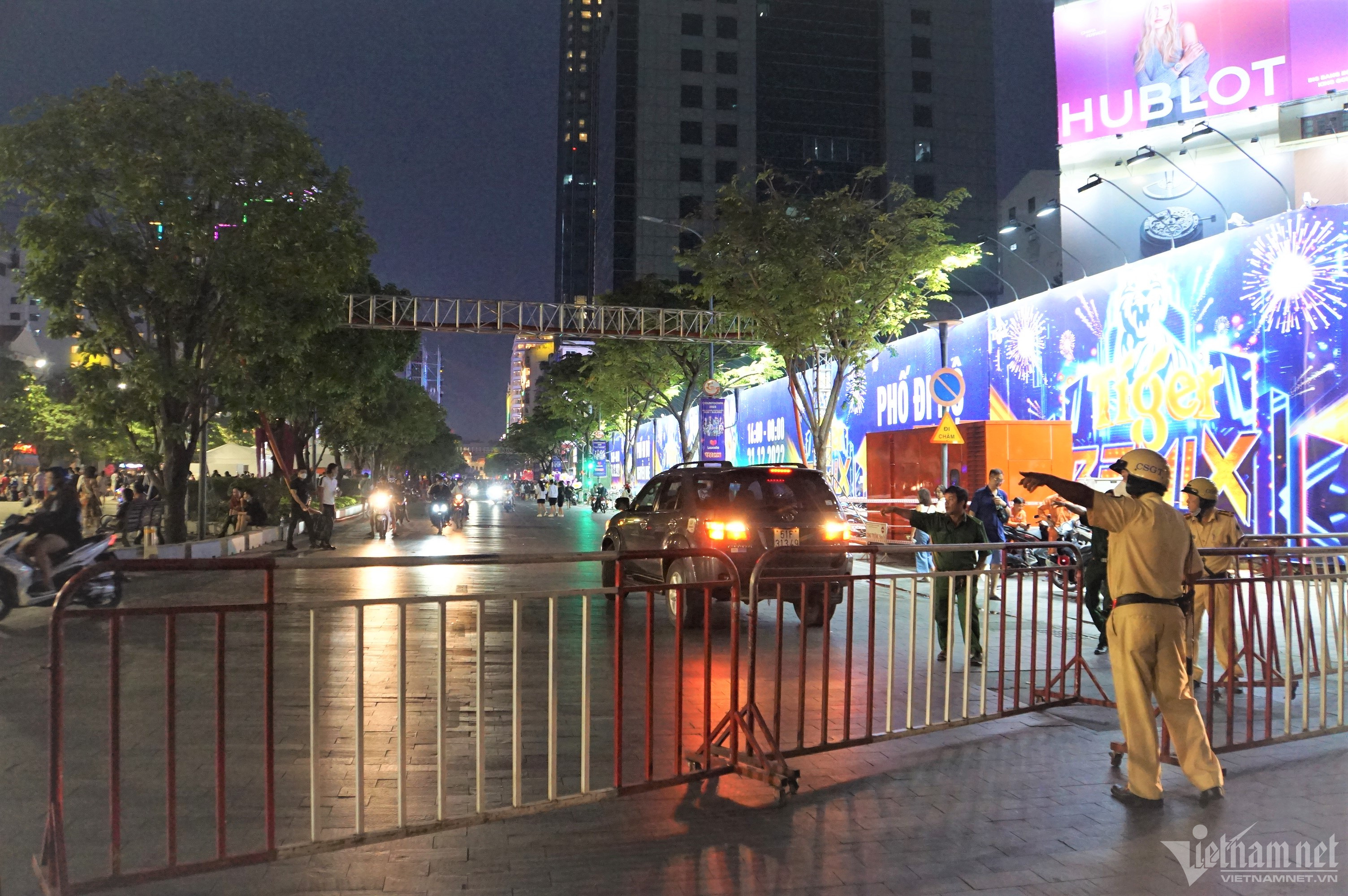 Lực lượng CSGT phong tỏa đường Nguyễn Huệ để phục vụ chương trình bắn pháo hoa dịp lễ Tết Nguyên đán 2023. Ảnh minh họa