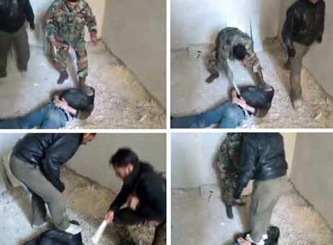 Một đoạn băng ghi lại hình bị nghi là binh sĩ Syria đánh một người nổi dậy và đứng lên cổ của nạn nhân phát tán rộng rãi trên Youtube.