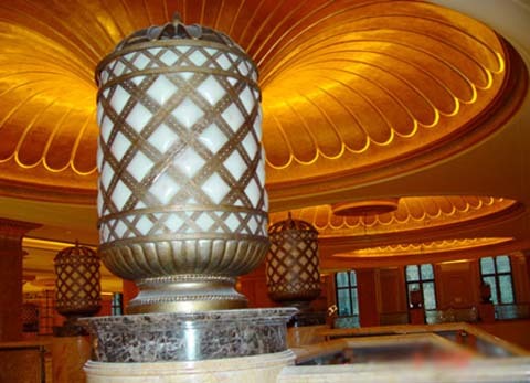 Khách sạn có tổng diện tích ốp đá cẩm thạch là 93.000 m², hơn 6.000 m² vàng lá dát lên các đồ vật tại khách sạn và xa hoa hơn là sự hiện diện của 1.002 giá treo đèn làm bằng loại pha lê Swarovski hết sức quý giá có tổng trọng lượng 2,5 tấn.