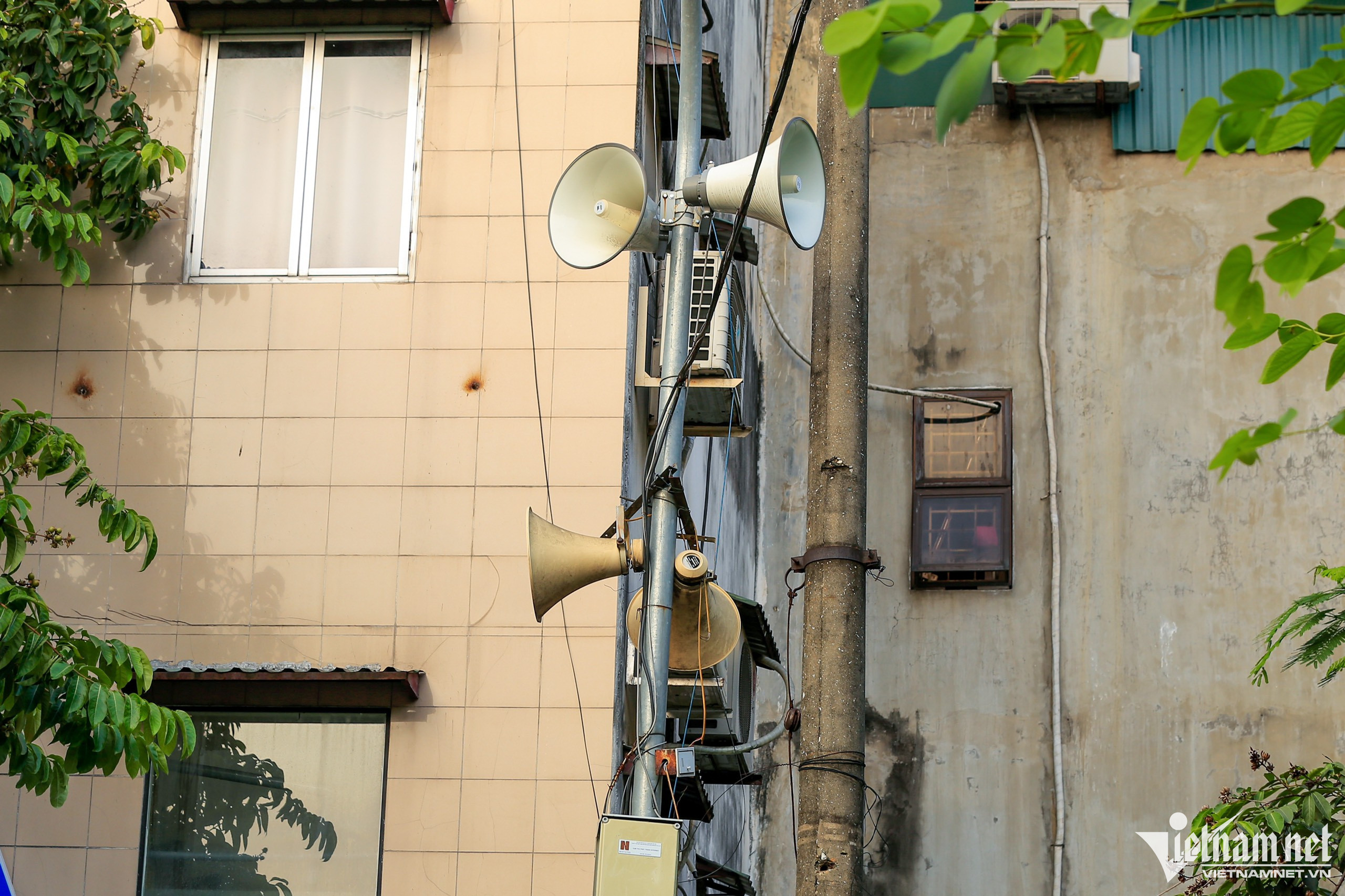 Đi ngoài phố, nếu như ít để ý, nhiều người không biết hệ thống loa phường vẫn tồn tại từ lâu ở các ngõ ngách, treo trên cao ở các khu dân cư. Có nơi loa vẫn hoạt động, có nơi loa tậm tịt, thậm chí vỡ hỏng không có người quan tâm.Tại một chung cư trên phố Đinh Núp (quận Cầu Giấy), loa được cố định trên một cột đèn và nối chung đường điện. Nhiều người cho rằng loa phường hiện không còn phù hợp với cuộc sống hiện nay. Thay vào đó, cư dân chủ yếu cập nhật tin tức ở trong các hội nhóm và trên nền tảng mạng xã hội. Có những khu dân cư, loa được treo sát cửa nhà, dù đóng kín cửa người ở bên trong vẫn nghe rõ. Thậm chí có chiếc loa hướng trực tiếp vào ban công nhà trên tầng cao, chĩa thẳng vào cửa sổ. Hình ảnh tại khu dân cư trên phố Yên Lãng (quận Đống Đa).Ông Ngữ (đường Đê La Thành) không hài lòng khi hệ thống loa được đặt ngay sát ban công nhà mình. “Phòng phía ngoài là phòng ngủ và bên cạnh là phòng học của các cháu tôi. Khi loa phường phát ra âm thanh vào mỗi buổi sáng, chúng nó giật mình, quấy khóc. Việc khôi phục loa phường rất hợp lý nhưng phải đặt ở vị trí phù hợp, không gây ảnh hưởng đến cuộc sống người dân”, ông Ngữ chia sẻ. Trên đường Đê La Thành (quận Đống Đa), có chiếc bị vỡ hỏng, cái còn lại không rõ "số phận".Người dân sinh sống quanh khu vực phố Thành Công (quận Ba Đình) cho biết, cứ bảo trì, bảo dưỡng một thời gian là loa bị phá hỏng, không những thế đường điện kết nối thường xuyên bị cắt đứt.“Khoảng cách giữa cột điện treo loa cách ban công nhà tôi hơn 1m. Mặc dù đã làm cửa kính 3 lớp nhưng mỗi buổi sáng âm thanh từ loa vẫn vọng vào trong nhà. Không phủ nhận sự tiện lợi của loa phường khi dùng để thông báo người dân về những sự kiện quan trọng của địa bàn như hội nghị, văn nghệ, lịch tiêm chủng và lương hưu. Nếu nó được lắp đặt ở vị trí hợp lý và thời gian thông báo chỉ kéo dài 15 phút tôi lại rất đồng tình”, ông Trinh (quận Đống Đa) nói. Thông thường chỉ được lắp đặt tối đa 2 loa treo một cột, nhưng thực tế có rất nhiều cột treo tới 4 loa. Hình ảnh tại phố Thợ Nhuộm (quận Hoàn Kiếm).Không chỉ được treo trên cột điện ở khu dân cư, nhiều hệ thống loa phường còn ngự ở các ngã tư như bên lan can cầu vượt (cầu vượt Thái Hà, quận Đống Đa) nhằm tuyên truyền việc phòng cháy chữa cháy, đảm bảo trật tự an toàn giao thông.7h sáng, tại phường Nhân Chính (quận Thanh Xuân), anh Đỗ Đình Việt phụ trách vận hành máy móc, biên tập và đọc bản tin vào hai khung giờ (7h và 16h30). “Trước đây phường Nhân Chính có 85 điểm đặt loa, nay rút gọn còn 20 vị trí. Thông tin chúng tôi cập nhật cho người dân cũng được rút gọn, tránh dài dòng lan man. Thời lượng đọc một bản tin dài khoảng 15 phút tập trung vào những thông tin liên quan đến người dân, chính trị tại địa phương. Tuy nhiên, vẫn còn một số người tỏ ra không ủng hộ loa phường vì điểm đặt loa gần nhà dân và bất cập trong việc bố trí”, anh Việt chia sẻ.