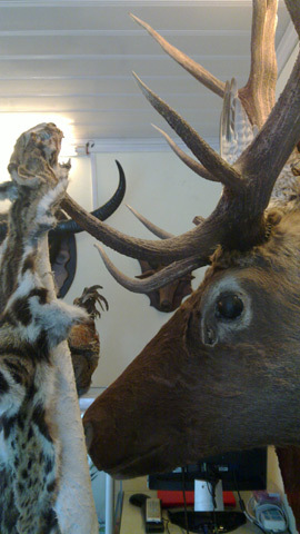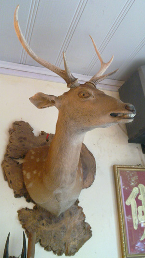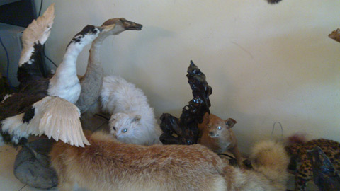 Đây là một cửa hiệu làm dịch vụ nhồi tiêu bản thú. Nhiều loài thú rừng đã được