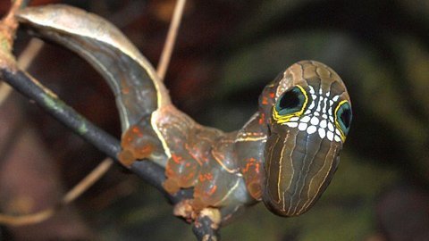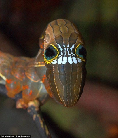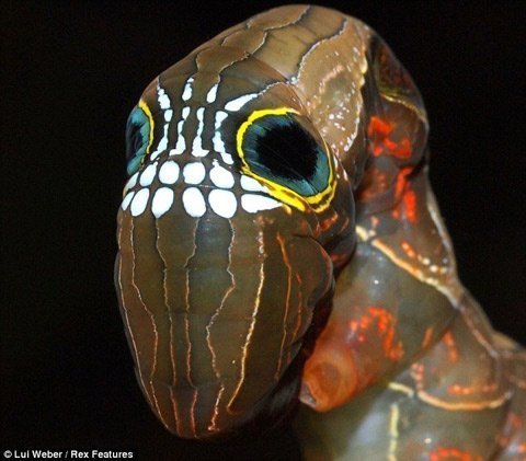 Nhiếp ảnh gia Lui Weber đã may mắn chụp được hình ấu trùng sâu cực hiếm này. Đặc điểm nổi bật của nó là một loạt các vết trắng có hình giống như hàm răng nằm ở vùng giữa hai mắt. Trông xa, khuôn mặt này không khác gì hộp sọ và đủ để dọa cho kẻ săn mồi chết khiếp.
