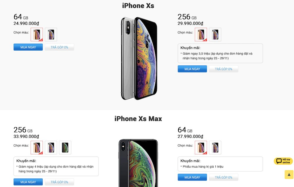 iPhone Xs và Xs Max giảm giá 3,5-4 triệu đồng. |