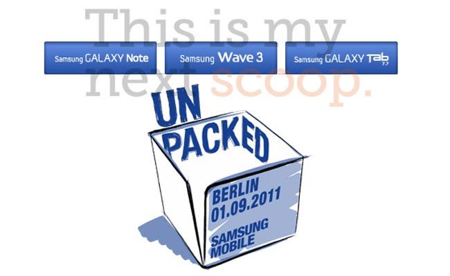Nên nhớ rằng, chính tại IFA năm ngoái, Samsung đã công bố họ máy tính bảng Galaxy Tab. Vì thế, trang This Is My Next đồn đoán rằng sản phẩm mới sẽ là Galaxy Tab 7.7, ngoài ra còn có smartphone Wave 3 và Galaxy Note. Wave là tên mà Samsung đặt cho những sản phẩm sử dụng hệ điều hành smartphone Bada của hãng, còn căn cứ theo thói quen đặt tên bấy lâu nay của Samsung, có vẻ như Galaxy Tab 7.7 sẽ là phiên bản nâng cấp của model Tab 7-inch đời đầu.