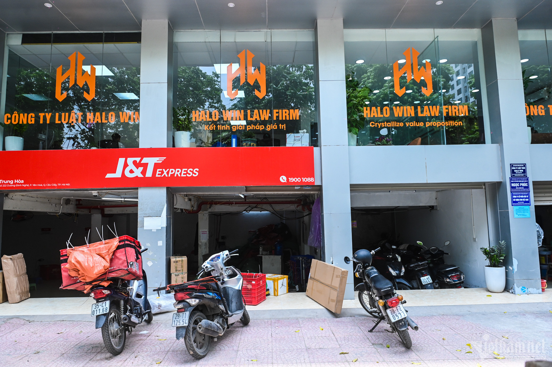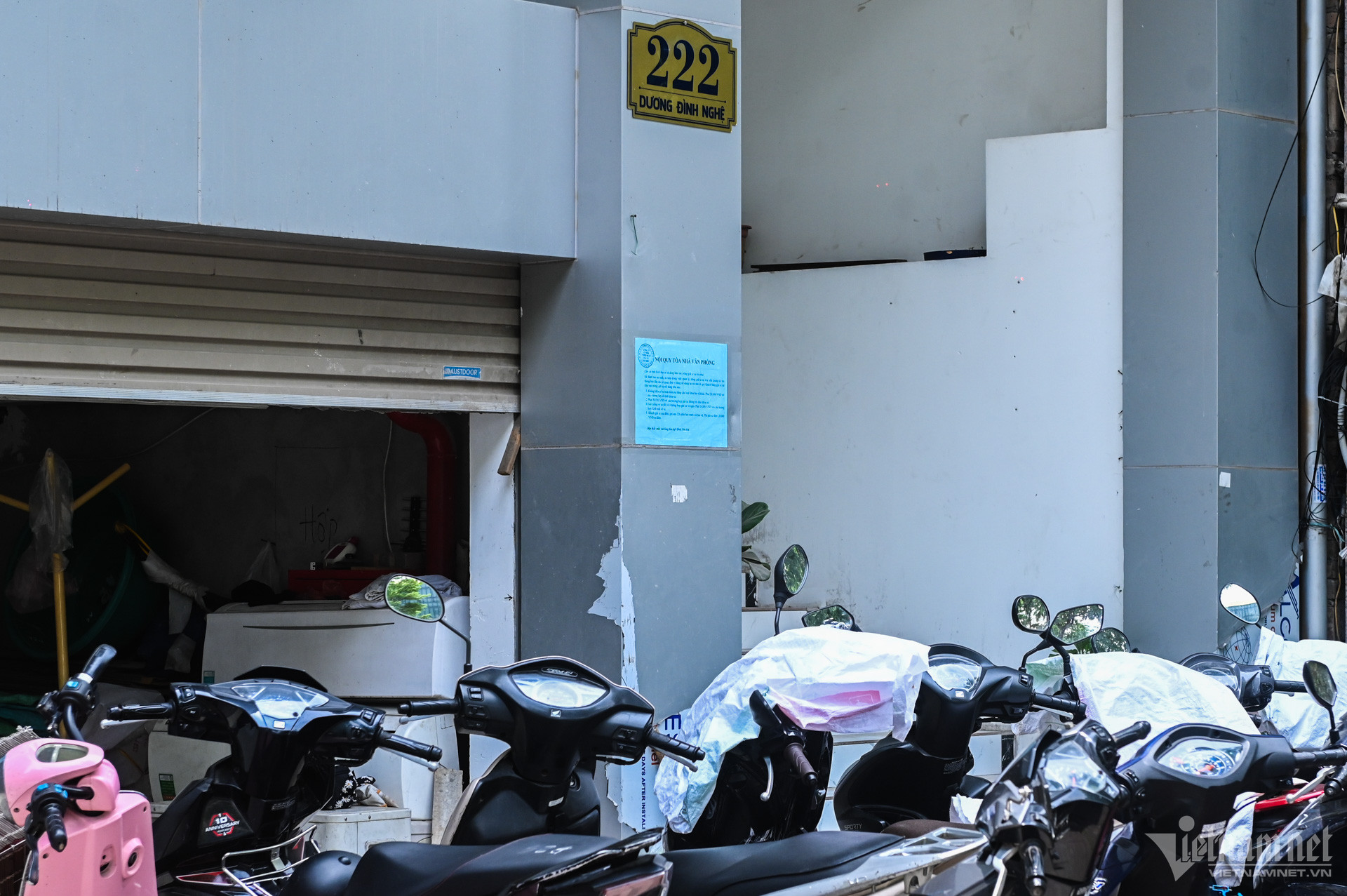 Tòa nhà 222 Dương Đình Nghệ nằm trong danh sách đình chỉ hoạt động nêu trên nhưng các văn phòng tại đây vẫn có dấu hiệu hoạt động bình thường.