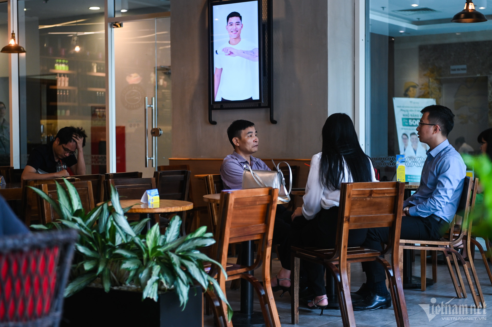 Đây là tòa nhà kết hợp văn phòng và chung cư. Dưới sảnh tầng 1, quán cafe, văn phòng làm việc vẫn đông đúc người ra vào.