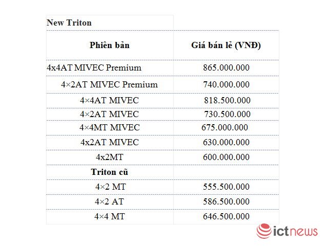 Cả phiên bản New Triton và phiên bản Triton cũ đều không điều chính giảm giá nhưng được tặng kèm ưu đãi trị giá 30 – 40 triệu đồng, bao gồm các phiếu nhiên liệu và quà tặng bảo hiểm vật chất.