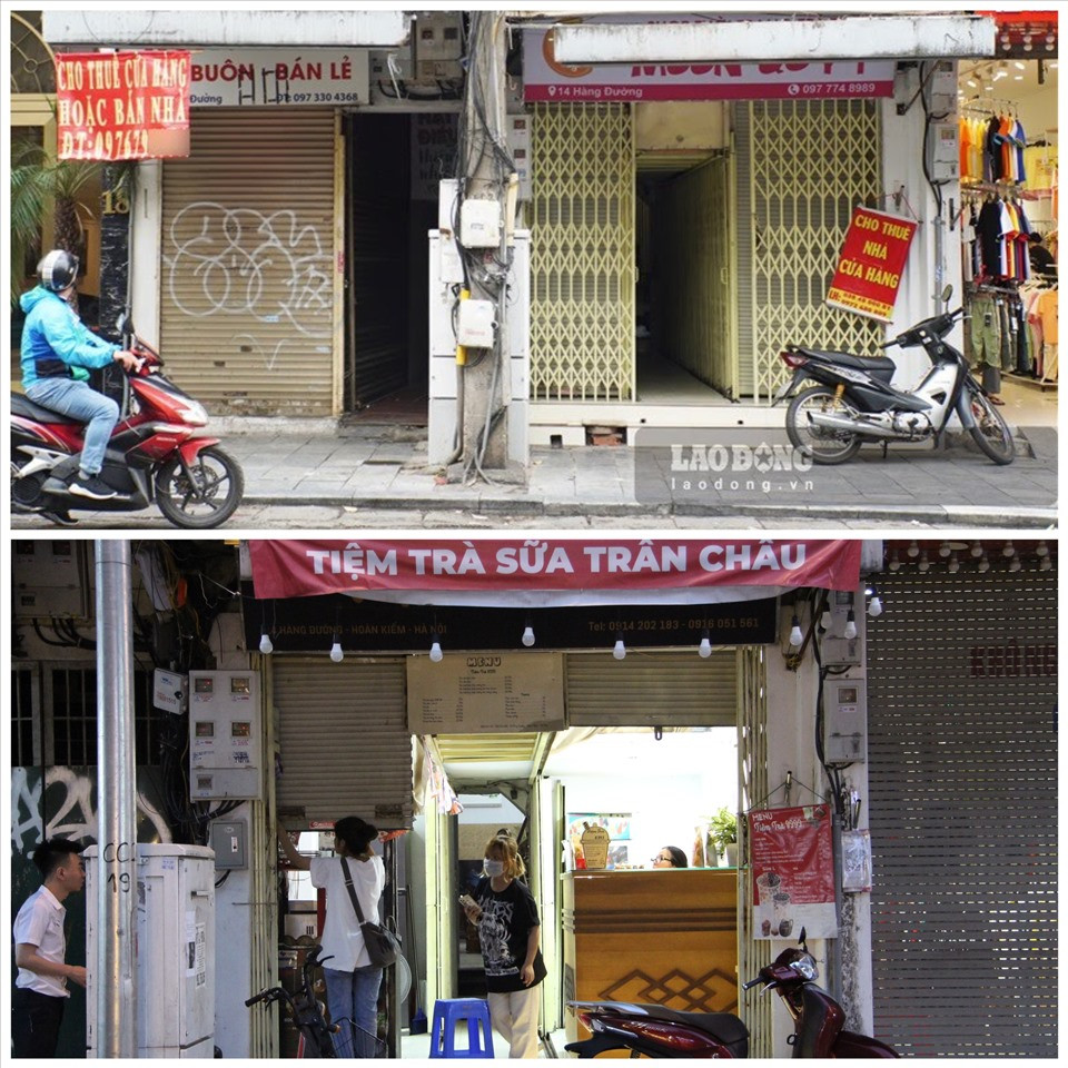 Ghi nhận thực tế của PV Lao Động tại một số tuyến phố trung tâm Hà Nội như Đào Duy Từ, Hàng Khoai, Hàng Đường, Hàng Mã... nhiều mặt bằng từng treo biển cho thuê vào năm trước đã được phủ kín.