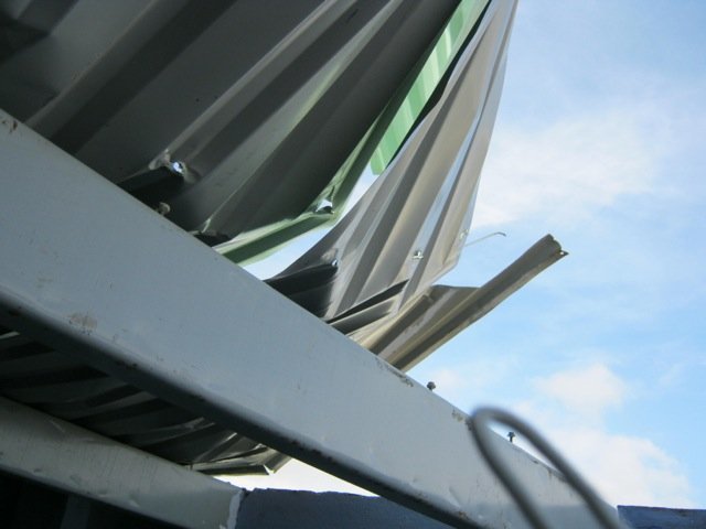 | Nhà xưởng Cty TNHH Thu Lan và nhiều nhà dân bị tốc mái. |