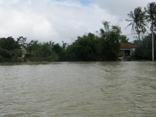 | Mưa lớn kéo dài khiến hơn 300 hộ dân ở các thôn Hiệp Đồng, Thạch Tuân 2, xã Hòa Xuân Đông và xã Hòa Vinh bị cô lập hoàn toàn. |