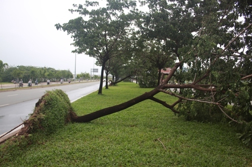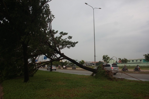 May mắn cây này đổ ngã vào bên trong con lươn nên không gây hậu quả