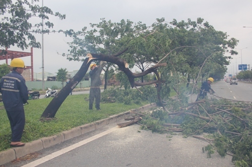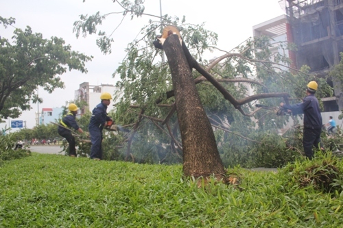 Ngay sau khi sự việc xảy ra, nhân viên cây xanh đô thị TP.HCM đã có mặt để phân luồng, điều tiết giao thông