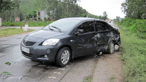 Vụ tai nạn xảy ra vào lúc 16h ngày 30/7 trên QL. 1A đoạn chạy qua địa bàn xã Ninh Hải, huyện Tỉnh Gia (Thanh Hoá). Tại hiện trường chiếc xe con Toyta Vios đã bị bẹp dúm một bên sườn, gãy trục bánh sau và nổ lốp sau vụ va chạm.