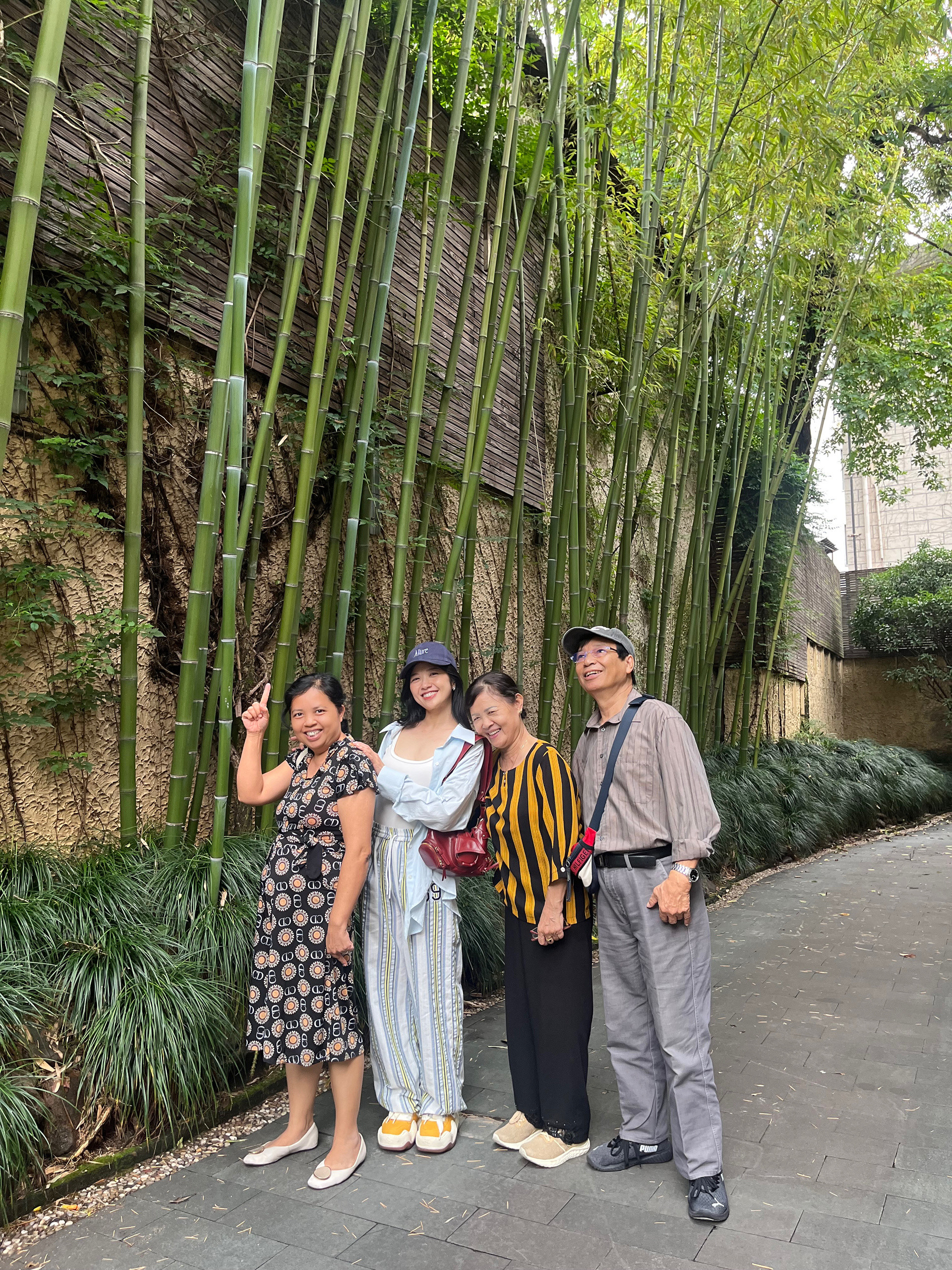 Vợ chồng NSND Ngô Đặng Cường và con gái lớn sang thăm vào dịp ca sĩ Suni Hạ Linh đang chăm chỉ tập luyện cho đêm chung kết chương trình Đạp gió 2024 ở TP Trường Sa, Hồ Nam (Trung Quốc).