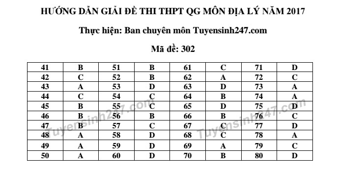 Lời giải tham khảo môn Địa lý mã đề 302 tốt nghiệp THPT quốc gia năm 2017