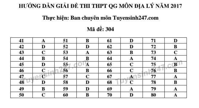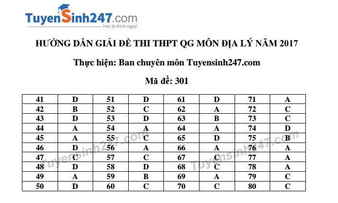 Lời giải tham khảo môn Địa lý THPT quốc gia năm 2017 tất cả mã đề.