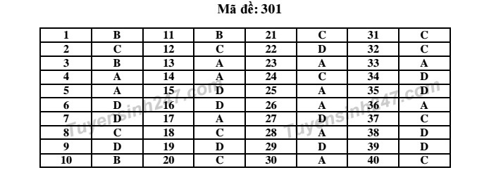 Lời giải tham khảo môn Lịch sử mã đề 301