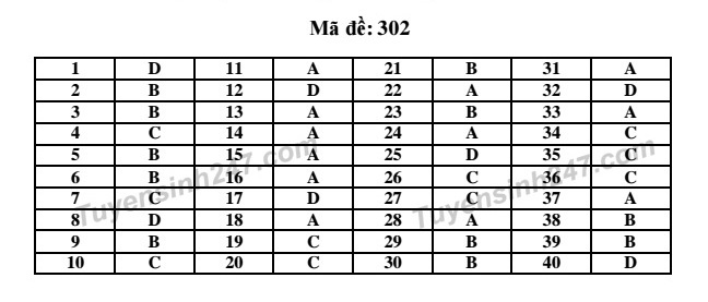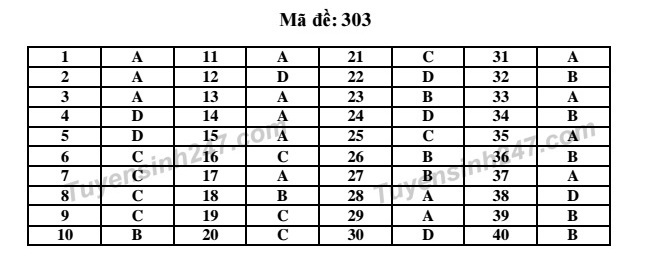 Lời giải tham khảo môn Lịch sử mã đề 303