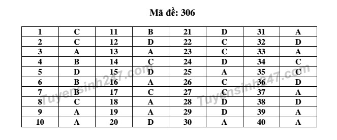 Lời giải tham khảo môn Lịch sử mã đề 306