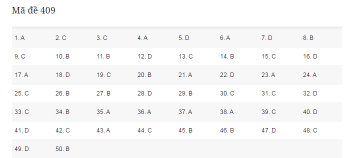Lời giải tham khảo môn Tiếng Anh mã đề 409