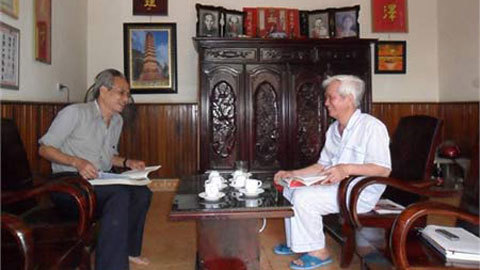 | Ông Đôn (phải) và ông Lãm có chung một niềm đam mê về những giá trị văn hóa truyền thống của địa phương. |