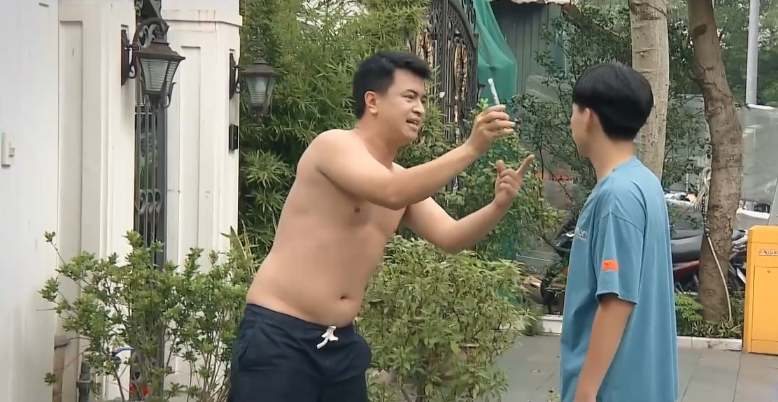 Cũng trong tập này, biết không thể moi được tiền của bố và cũng biết nhà Dũng có điều kiện, con trai ông Thành (NSND Bùi Bài Bình) nghe lời vợ tới nhà gặp Dũng để ăn vạ đòi tiền.
