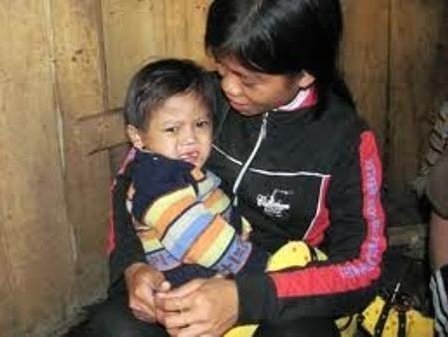 | Cháu Hồ Thị Hạnh bị bệnh bại não bẩm sinh-con của Hồ Cương và Hồ Thị Thành. |
