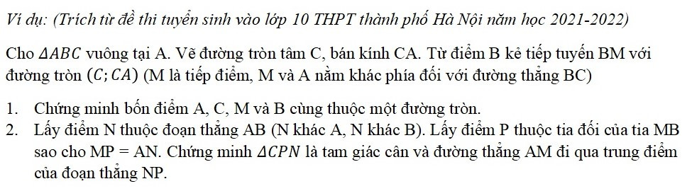 - Đề bài cho đường tròn tâm C có bán kính CA, thí sinh vẽ đường tròn tâm A bán kính AB hoặc bán kính AC.