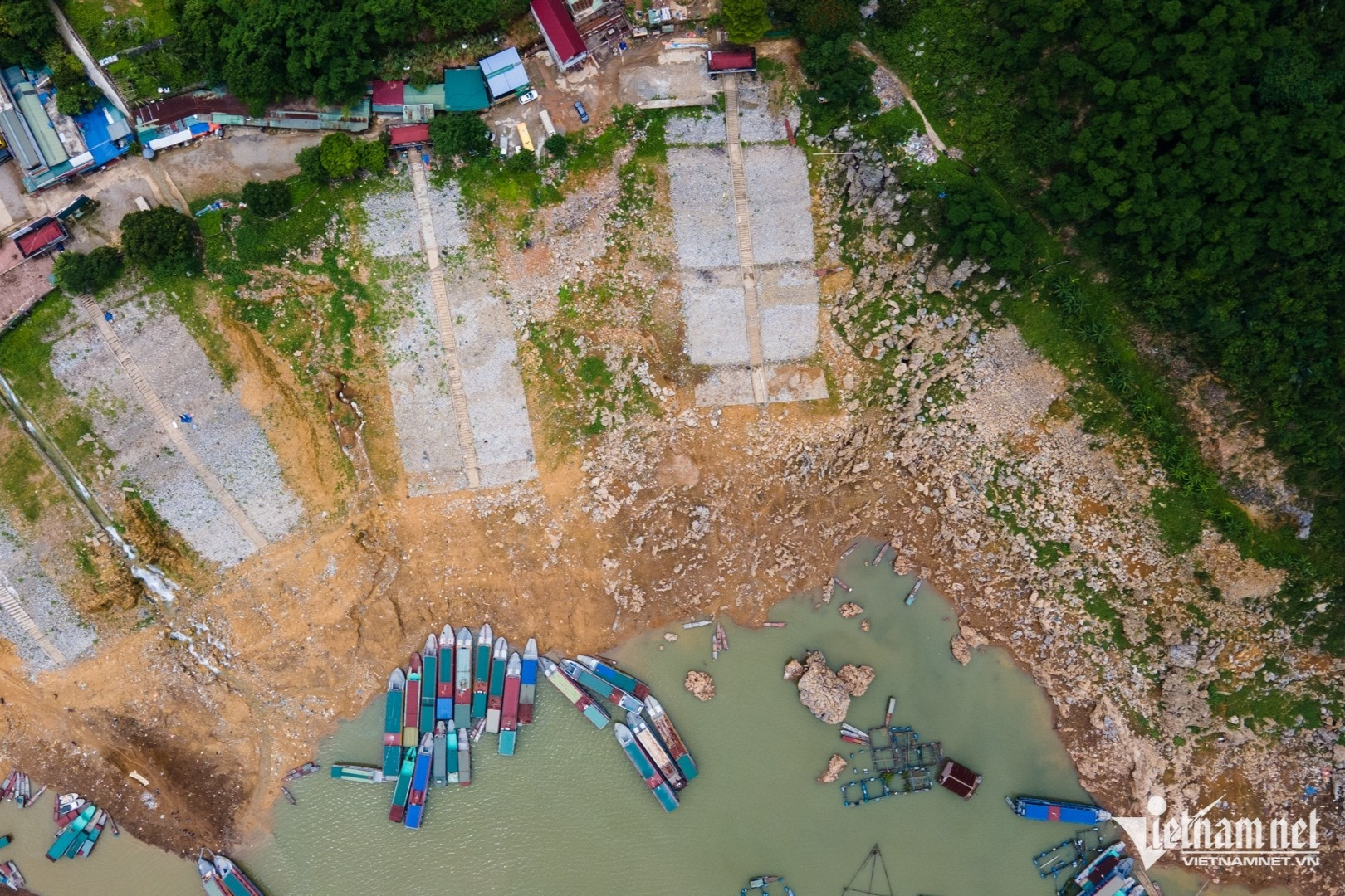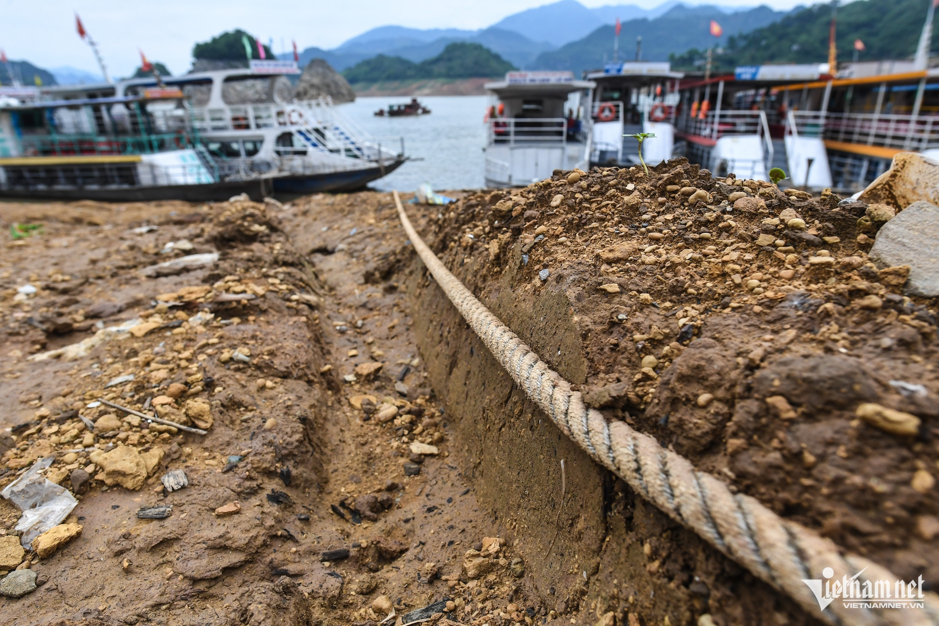 Khu vực cảng Thung Nai - nơi neo đậu của tàu thuyền chở khách du lịch, nước rút sâu, ven bờ lộ ra lớp bùn đất hàng chục mét. Vào mùa khô hàng năm, nước lòng hồ có xuống thấp, tuy nhiên tàu vẫn ra vào đón khách được. Năm nay, nước cạn, tàu không thể cập bến.
