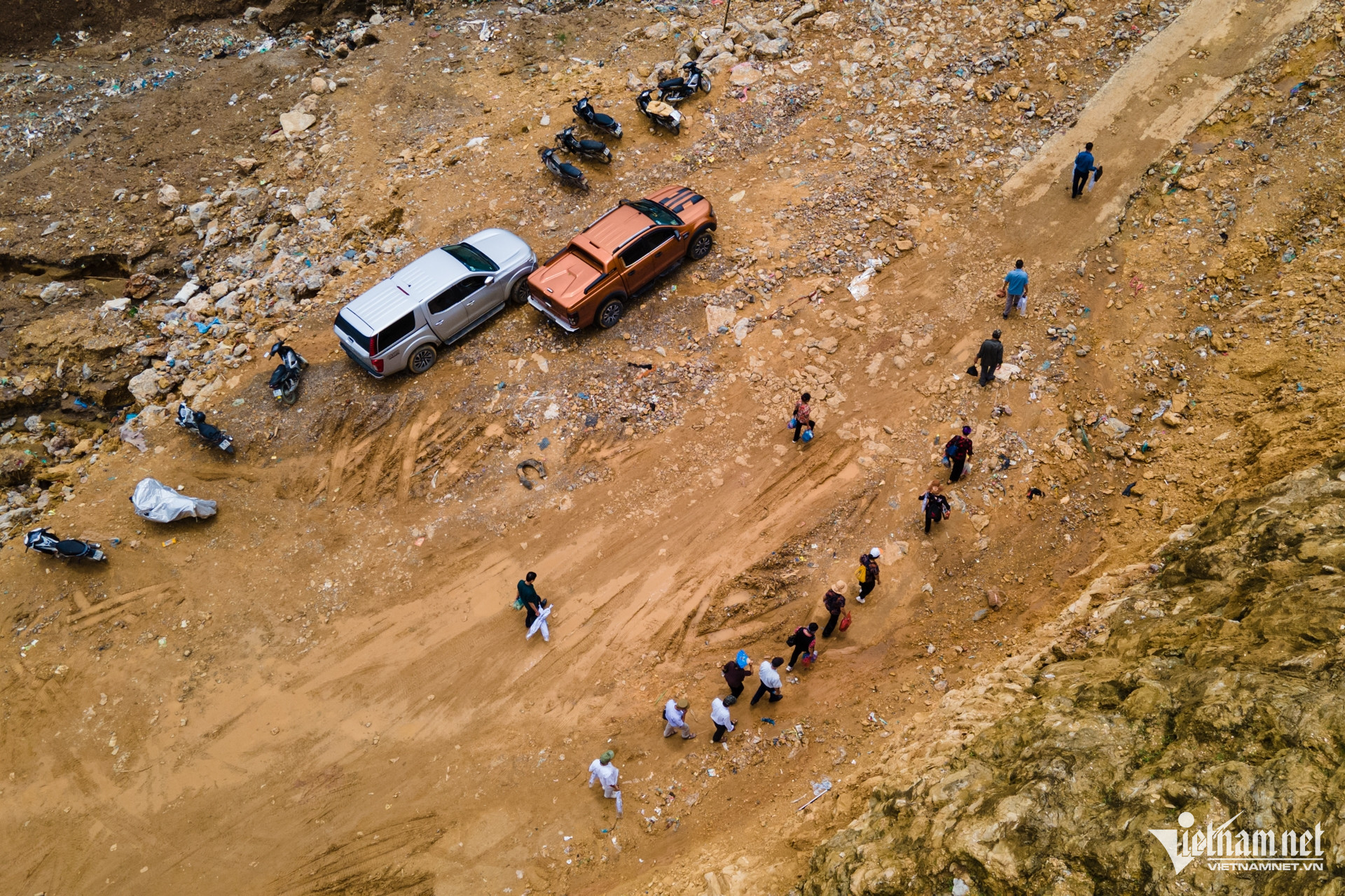 Lòng hồ nhiều khu vực trơ đáy, tập trung rác thải ngổn ngang. Để di chuyển ra mép nước, nhiều người phải cuốc bộ qua khu vực này.