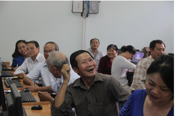 Niềm vui của các cô chú học viên trong giờ thực hành.