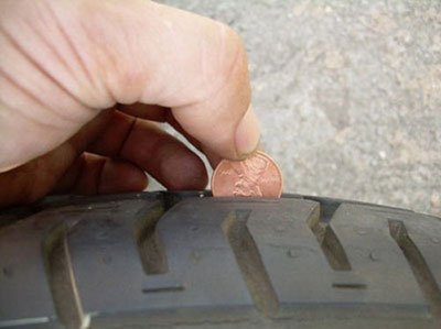 Bạn có thể xác nhận bằng cách đặt đồng xu 1 cent vào rãnh của gai lốp với chiều của đầu Abe Lincoln cắm xuống mặt lốp. Nếu quan sát thấy toàn bộ đầu của Tổng thống lộ rõ thì bạn không còn lý do để chậm trễ thay lốp mới cho xe.