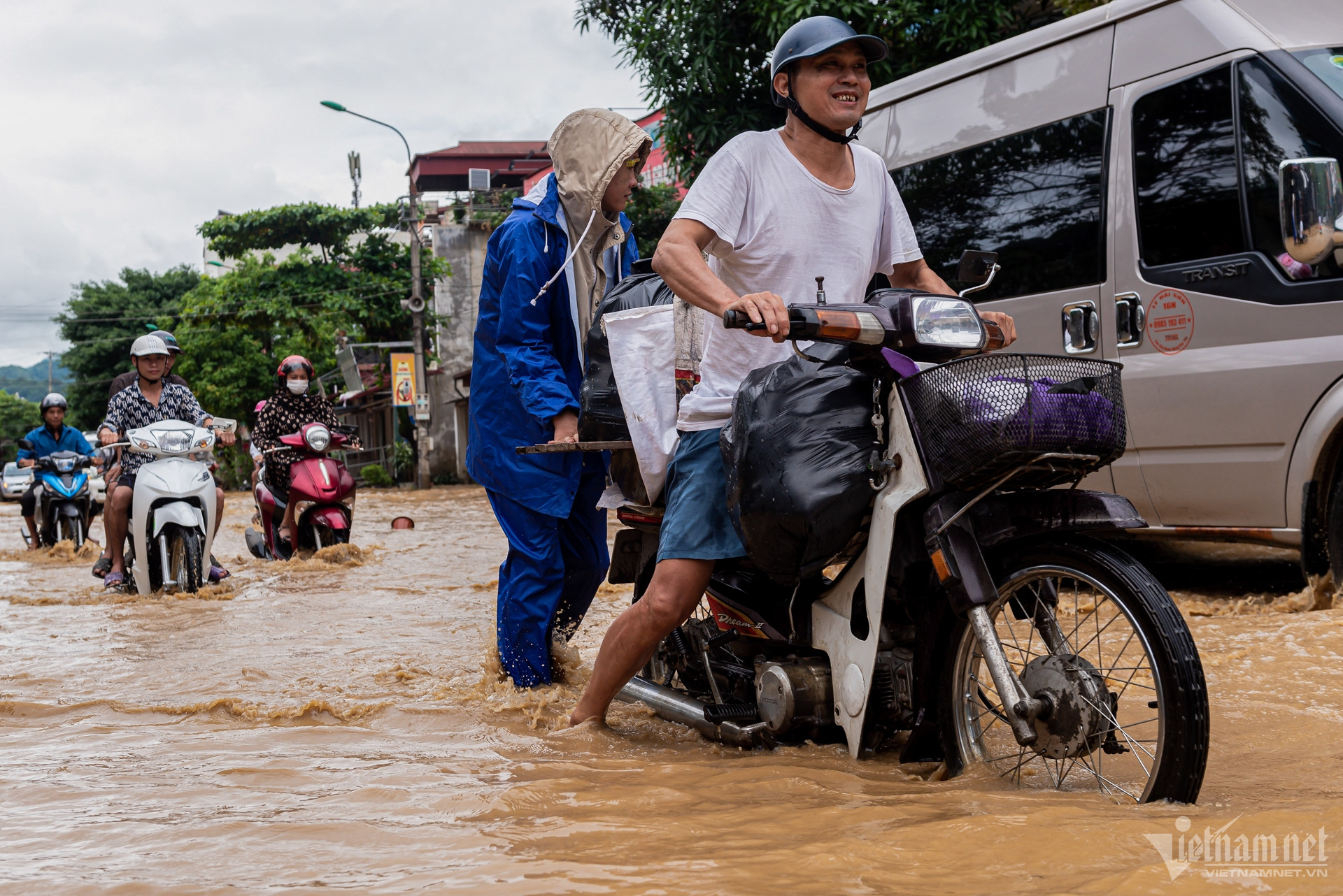 Nhiều tuyến đường trung tâm TP Hà Giang bị ngập sâu khiến giao thông ách tắc nghiêm trọng. Phải đến khoảng 15h chiều 10/5, khi nước rút, các phương tiện mới có thể lưu thông trở lại.