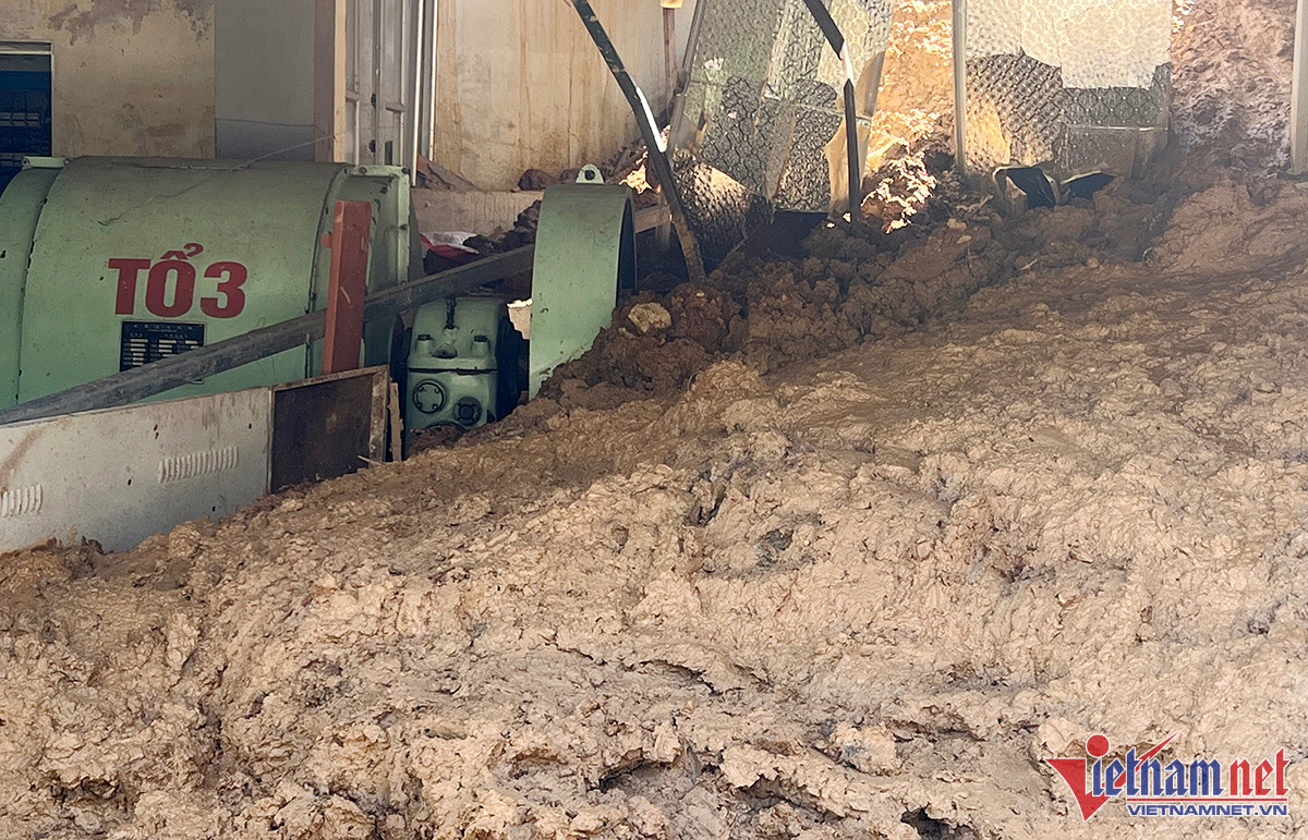 Từ bên trong tổ máy phát điện số 3, một khối lượng bùn đất rất lớn sau khi vùi lấp con đường đã tràn vào trong nhà máy.