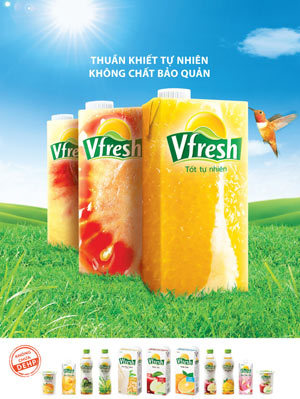 Việt Nam với nhãn hàng nước giải khát Vfresh.