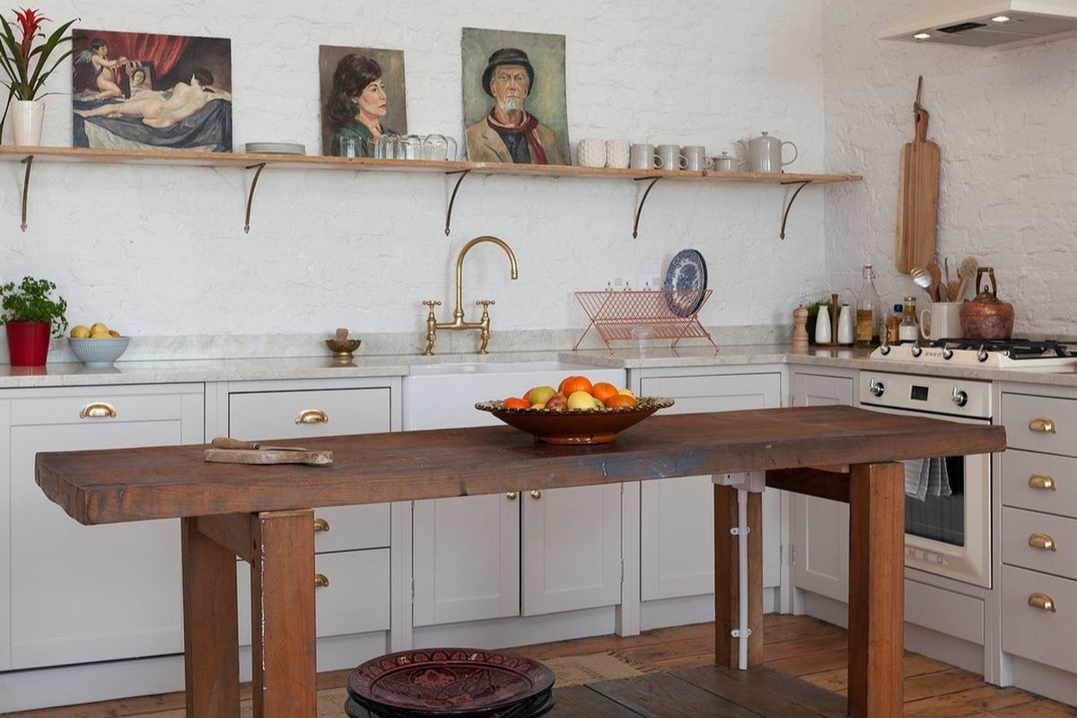 Những bức tranh có màu lặng (pha trộn màu xám và có tông màu thấp) cũng rất phù hợp với không gian bếp bởi sẽ giúp tôn lên màu sắc chủ đạo của tường, tủ kệ...