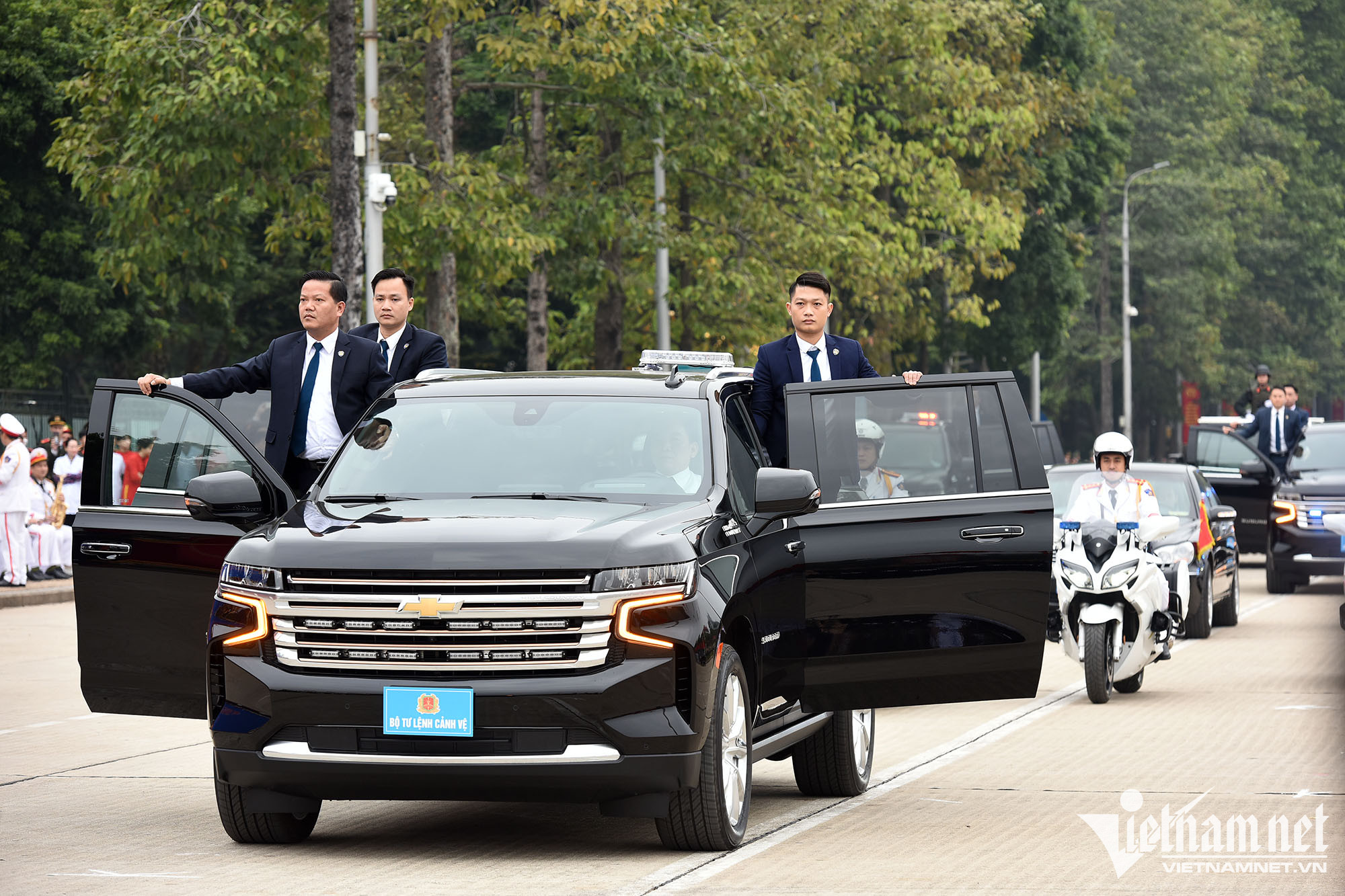 Sáng 6/1, trên Quảng trường Ba Đình, Bộ Tư lệnh Cảnh vệ (Bộ Công an) tổ chức khai mạc Hội thao truyền thống lực lượng Cảnh vệ Công an nhân dân lần thứ 34. Tham dự buổi lễ có Chủ tịch Quốc hội Vương Đình Huệ; Phó Chủ tịch nước Võ Thị Ánh Xuân; Đại tướng Tô Lâm, Bộ trưởng Công an cùng đại diện lãnh đạo các bộ, ban, ngành.Đại tướng Tô Lâm, Bộ trưởng Công an tặng hoa cho các đơn vị. Hội thao có sự tham gia của hơn 1.000 vận động viên, huấn luyện viên, trọng tài là cán bộ, chiến sĩ các đơn vị thuộc Bộ Tư lệnh Cảnh vệ và các đơn vị.Theo tình huống giả định, lực lượng cảnh vệ tháp tùng tổng thống nước X thăm quan một điểm du lịch công cộng ở Hà Nội. Bất ngờ bị một nhóm khủng bố trà trộn vào đám đông nhằm mục đích ám sát tổng thống nước X. Đoàn xe hộ tống tổng thống nước X trên đường đến địa điểm tham quan công cộng.Hộ tống đoàn xe bảo vệ còn có hàng chục cảnh vệ mặc vest đen đi trên hai ôtô.