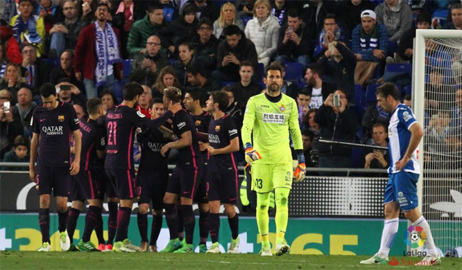 Sau 6 trận không ghi bàn trên các mặt trận, Luis Suarez tỏa sáng bằng cú đúp. Đây cũng là bàn thắng thứ 1.000 của La Liga 2016-17. Riêng Barca trải qua trận thứ 9 bất bại trên sân Cornella của Espanyol (6 thắng).