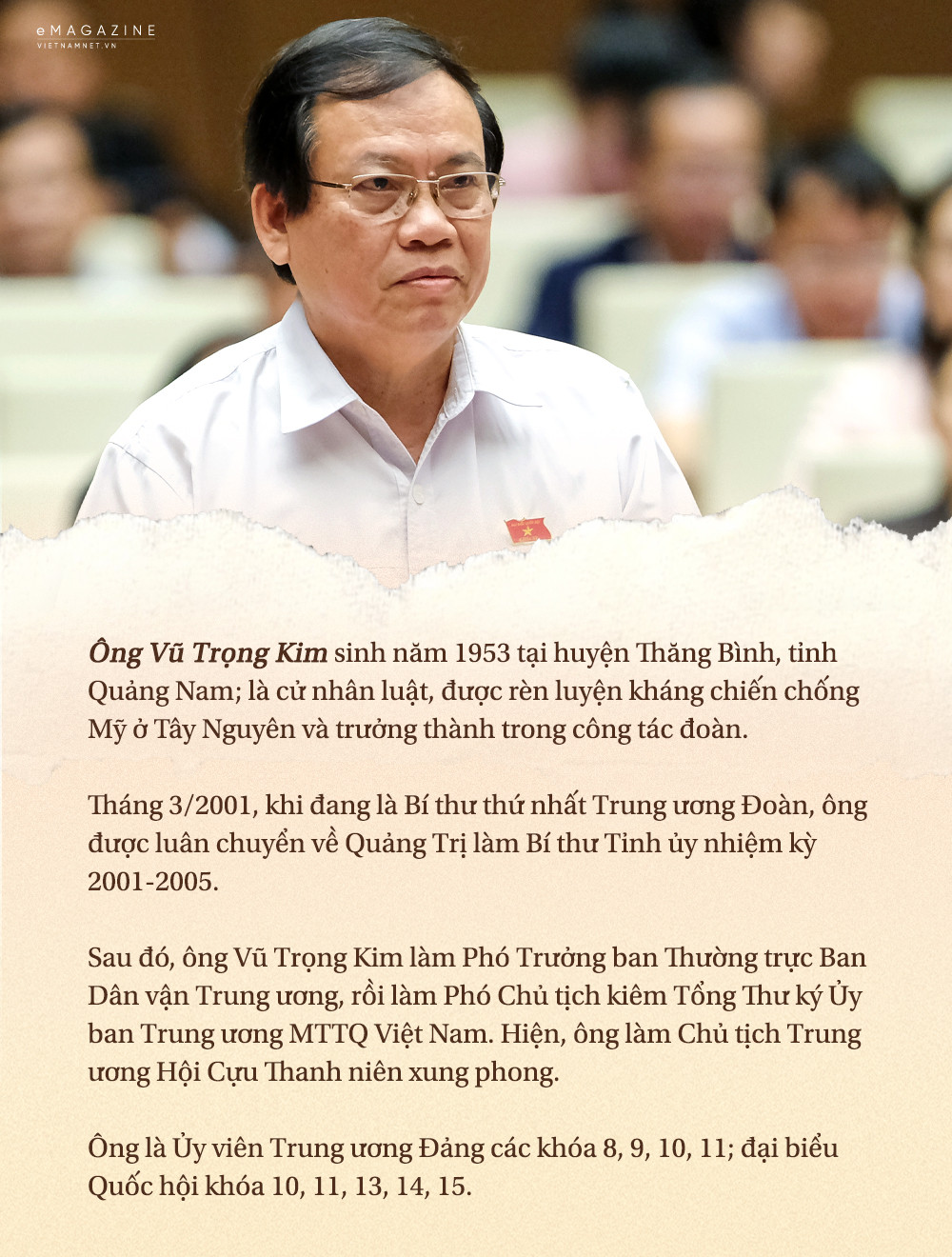 “Thời điểm đó, anh Nguyễn Văn An - Trưởng Ban Tổ chức Trung ương đến gặp tôi và cho biết, Trung ương muốn điều động một cán bộ về làm Bí thư Tỉnh uỷ Quảng Trị. Không do dự gì thêm, tôi nhận lời với tâm thế sẵn sàng đi đến bất cứ nơi đâu, làm bất cứ việc gì khi tổ quốc cần”, ông Vũ Trọng Kim nhớ lại.