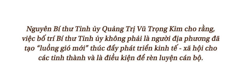 Từ câu chuyện của bản thân và thực tiễn trong công tác cán bộ thời gian qua, ông Vũ Trọng Kim cho rằng, chủ trương Bí thư Tỉnh ủy không phải là người địa phương đã tạo sự đổi mới mang tính đột phá trong lãnh đạo, chỉ đạo, điều hành ở từng tỉnh thành. Điều đó đã thúc đẩy kinh tế - xã hội, nâng cao đời sống nhân dân ở nhiều địa phương. Trong công tác cán bộ, khi Bí thư Tỉnh ủy không phải là người địa phương thì việc luân chuyển, bổ nhiệm cũng công tâm, khách quan hơn.