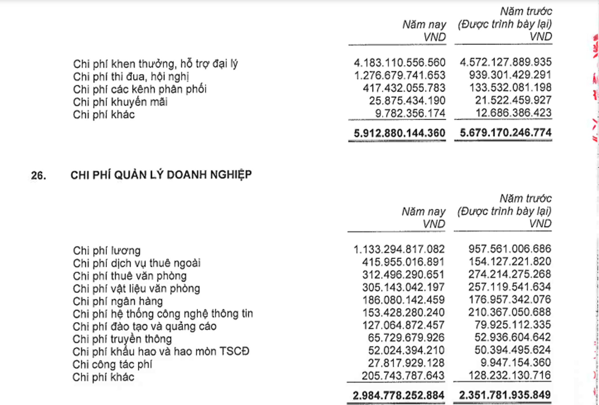Bên cạnh đó, chi phí khen thưởng, hỗ trợ đại lý cũng rất cao, tổng cộng gần 4,2 nghìn tỷ đồng trong năm 2022.