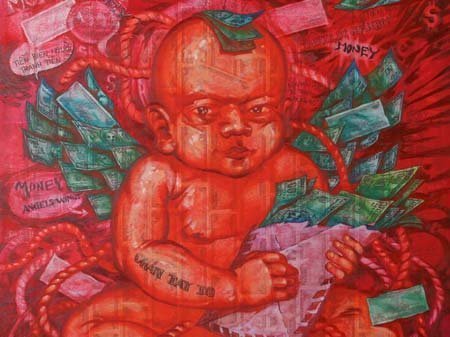 Tiền hay như thế, tuyệt vời là thế nhưng không phải khi nào người ta cũng hiểu đúng về nó. Hồi còn bé, để xây dựng một xã hội ảo tưởng, người ta mượn ý của một đại văn hào phương Tây để nhồi sọ thế hệ của bố rằng đồng tiền là con điếm của nhân loại. Để tô vẽ cho những giá trị đạo đức giả họ mượn dẫn, đánh tráo khái niệm và rao giảng: “hoàng kim hắc thế tâm”- đồng tiền, vàng bạc làm đen tối lòng người trong kinh sách Tàu. Ngày bố bằng tuổi con, cả đất nước đói khổ, cùng khốn, nhân dân làm thơ, vè tôn vinh tờ giấy bạc: