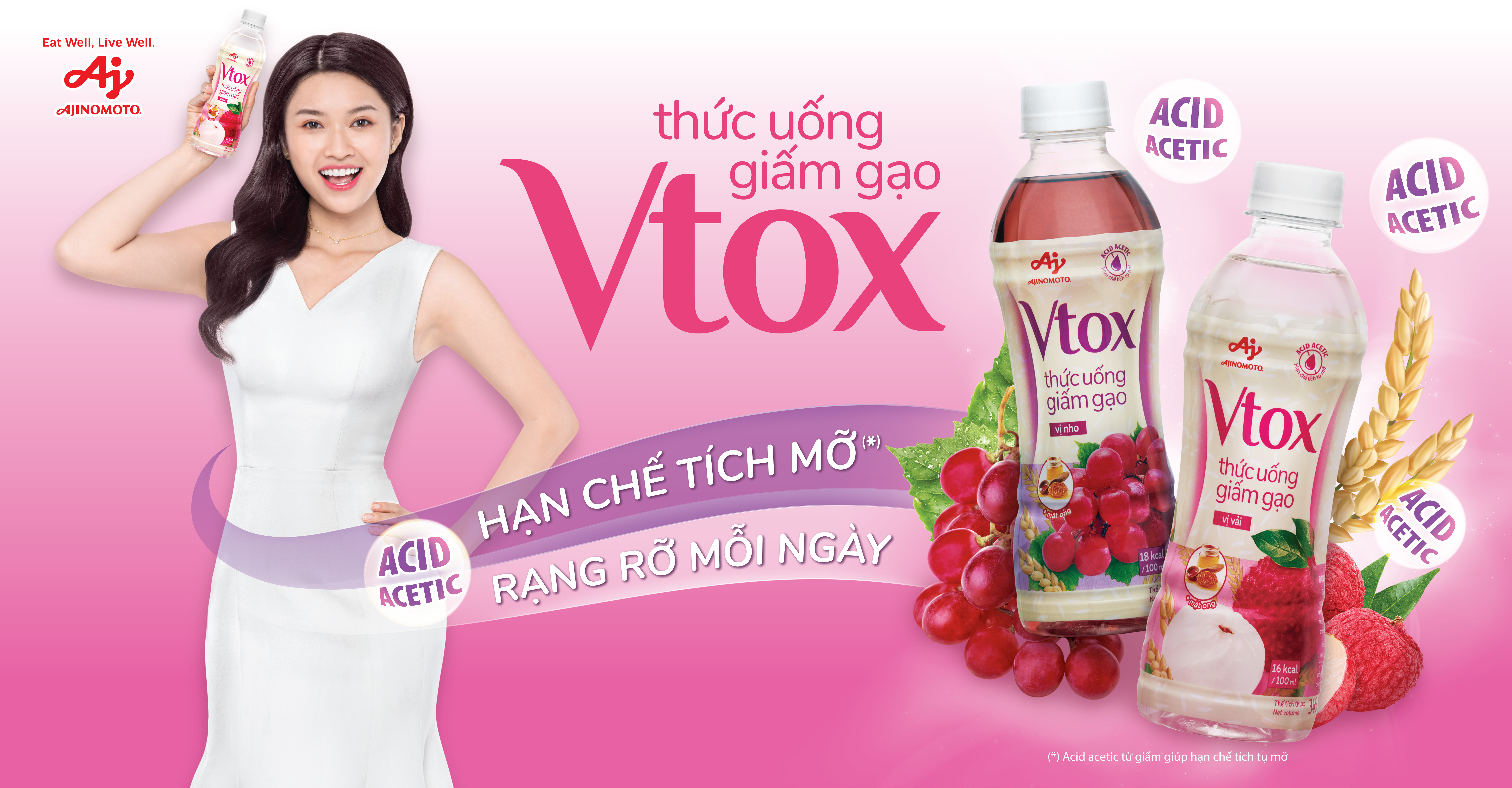 Sản phẩm thứ 2 là thức uống giấm gạo Vtox, được Ajinomoto sản xuất với nguồn cảm hứng từ thức uống giấm gạo lên men được người dân Nhật Bản quen dùng hằng ngày nhờ lợi ích giảm tích tụ mỡ của acid acetic.