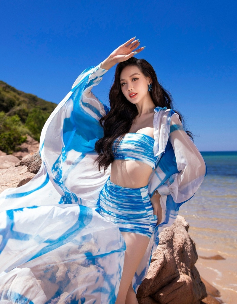 Lương Thuỳ Linh lộng lẫy khi diện chiếc váy dạ hội được phối màu tinh tế theo các tone vàng ánh kim khác nhau. H'Hen Niê giữ vững phong độ với body săn chắc và làn da nâu khỏe khoắn trong thiết kế màu trắng lệch vai được cắt xẻ nhẹ nhàng. Cô phối cùng bông tai dáng tròn và trang điểm theo tone nude.Khánh Vân và Ngọc Châu hoá thân thành cặp đôi búp bê với tạo hình và trang phục tương đồng. Hai chiếc váy màu hồng, dáng ngắn được thiết kế theo phong cách nữ tính với chất liệu bóng phối vải voan điệu đà.Trên phom dáng váy sơ mi cộc tay tối giản, chất liệu mỏng nhẹ cùng nét in tinh xảo tỏa sáng với tone hồng tím. Nàng thơ Jun Vũ lựa chọn kiểu tóc tết dài truyền thống kết hợp cùng túi xách đồng điệu để hoàn thiện set đồ hiệu của mình.Võ Hoàng Yến rạng rỡ trong thiết kế lãng mạn màu tím nhạt với kiểu dáng cúp ngực và phần chân váy bồng bềnh được đính kết từ hàng ngàn cánh hoa nhỏ. Cô phối cùng bông tai dáng dài cùng màu.Dịu Thảo e ấp trong chiếc váy được xếp lớp mô phỏng bông hồng một cách khéo léo, theo đó là chiếc nơ đen được thắt ngang eo làm điểm nhấn. Cô để kiểu tóc dài thẳng quen thuộc.Minh Tú làm mới hình ảnh với layout cam nâu, màu mắt khói ấn tượng và kiểu tóc xù búi cao để kết hợp cùng thiết kế cổ yếm bất đối xứng màu đen ánh kim. Chiếc váy ôm sát có phần tà choàng vai khá lạ mắt.Cặp đôi Minh Triệu - Kỳ Duyên tạo dáng ăn ý trong hai thiết kế màu trắng cùng kiểu áo croptop khoe eo thon và chân váy ngắn tôn lên đôi chân thon dài. Cả hai cùng để tóc rẽ ngôi và kết hợp với phụ kiện màu gold.Thanh Hằng thêm một lần mặc đẹp với phong cách menswear khi kết hợp áo sơ mi với chân váy cạp cao được xẻ tà ngang hông. Điểm nhấn của set đồ là phần phụ kiện đính đá màu đen và găng tay cá tính.Bảo Ngọc thướt tha bên bờ biển với outfit màu xanh - trắng mát mắt. Set đồ gồm áo bra và chân váy quây siêu ngắn phối cùng áo choàng oversize tay bồng. Cô để tóc xoăn dài và phối cùng bông tai ton-sur-ton.
