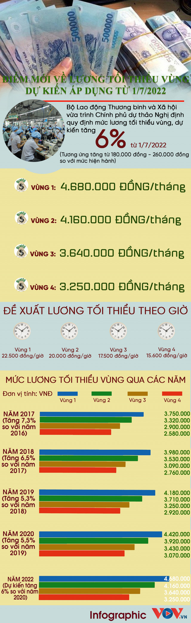 Sẽ có lương tối thiểu theo giờ; thay đổi địa bàn áp dụng lương tối thiểu vùng ở nhiều địa phương là những điểm mới về lương tối thiểu dự kiến áp dụng từ ngày 1/7/2022.