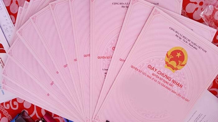 - Giấy chứng nhận quyền sử dụng đất, Giấy chứng nhận quyền sở hữu nhà ở và quyền sử dụng đất ở, Giấy chứng nhận quyền sở hữu nhà ở, Giấy chứng nhận quyền sử dụng đất, quyền sở hữu nhà ở và tài sản khác gắn liền với đất (gọi chung là Giấy chứng nhận hay Sổ đỏ).