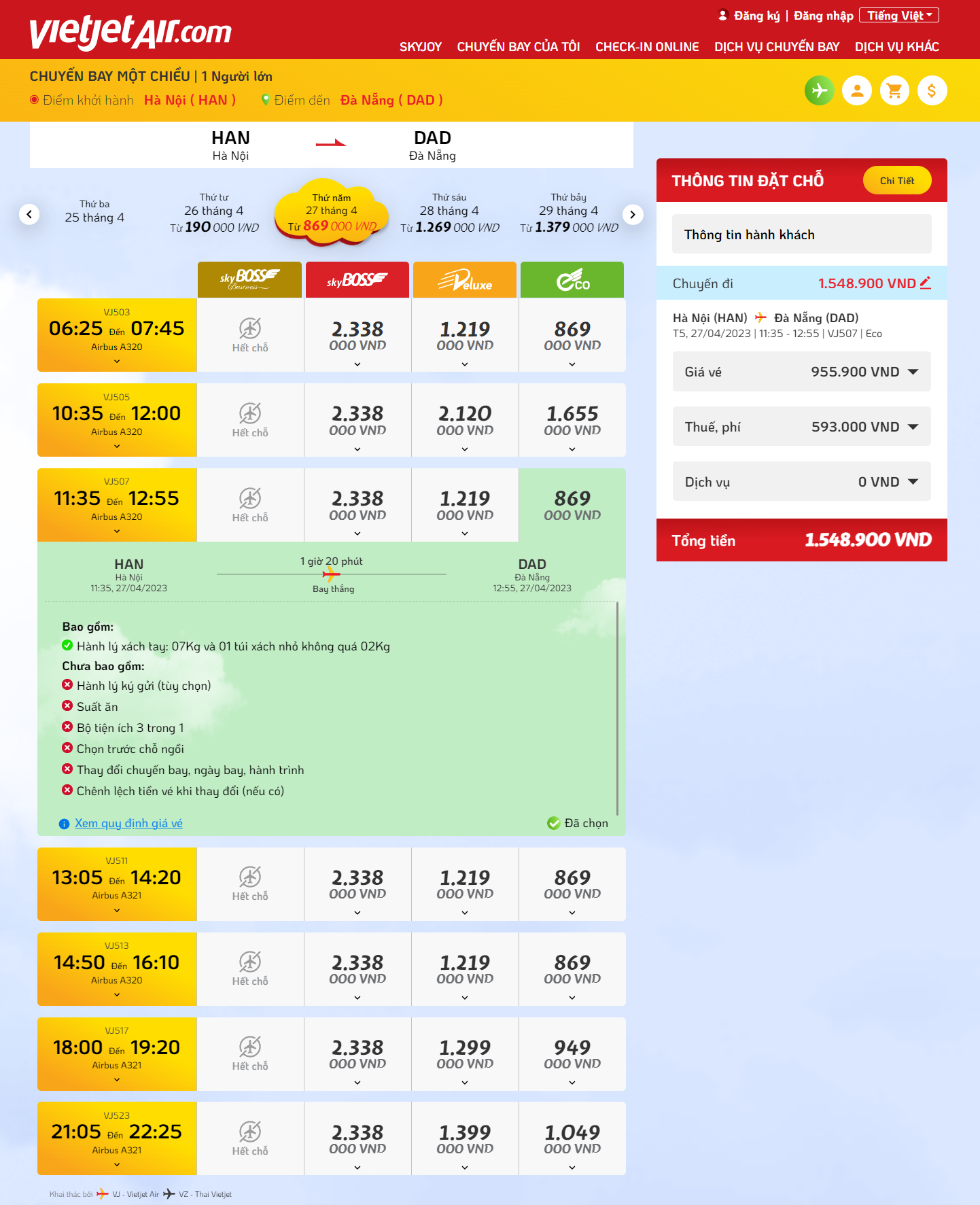 Kỳ nghỉ 30/4 và 1/5 sắp tới kéo dài 5 ngày, được dự báo là một mùa du lịch sôi động nhất từ trước đến nay. Trong 2 ngày cao điểm mở đầu kỳ nghỉ lễ là 28 và 29/4, nhiều đường bay “vàng”, giờ đẹp giữa Hà Nội - TP.HCM, các đường bay kết nối các thành phố du lịch lớn như Đà Nẵng, Huế, Nha Trang, Đà Lạt, Quy Nhơn... đã hết vé hoặc chỉ còn vé hạng thương gia.