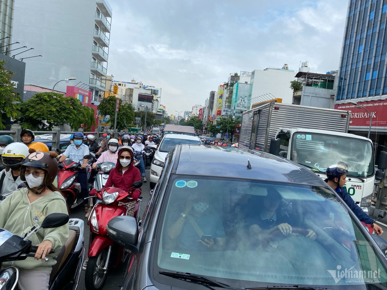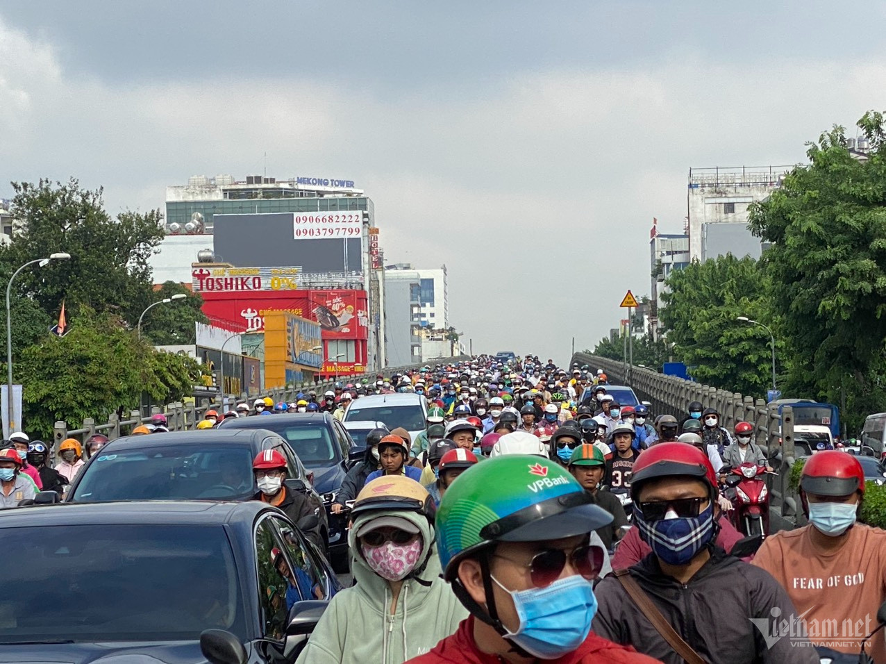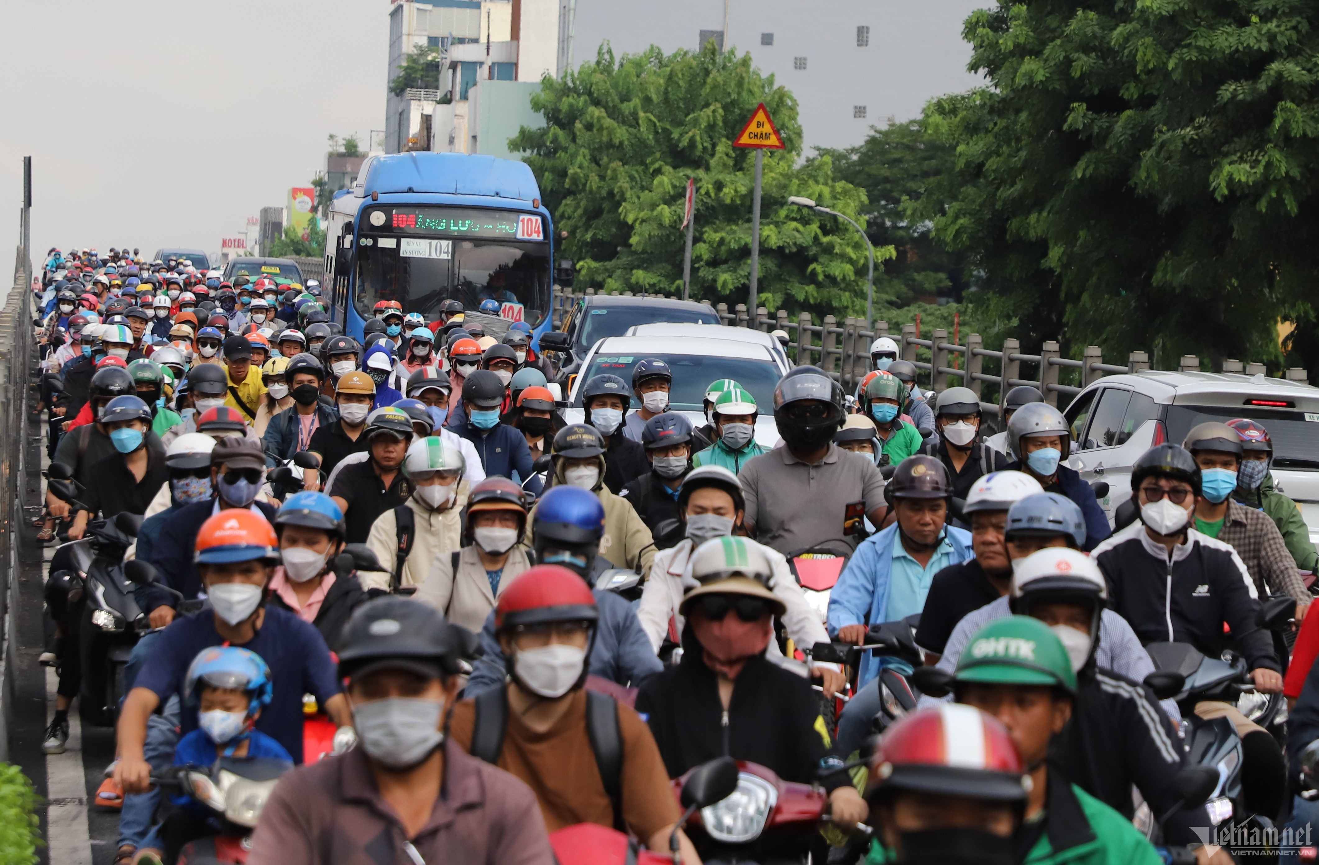 Giờ cao điểm sáng 21/7, tuyến đường cửa ngõ sân bay Tân Sơn Nhất xảy ra ùn tắc, hàng nghìn phương tiện ken kín đường, không thể di chuyển.