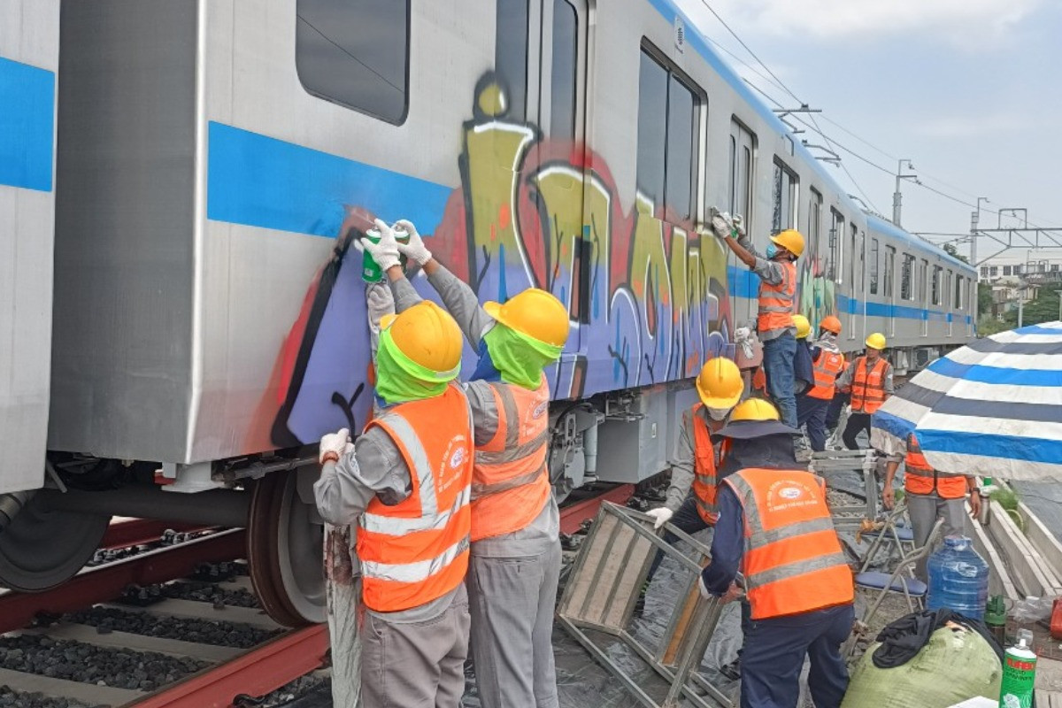 Theo Ban Quản lý đường sắt đô thị TP.HCM, rạng sáng 30/4, một toa tàu của đoàn tàu số 3, thuộc tuyến metro số 1 đậu ở depot Long Bình bị vẽ bậy với các hình sơn dạng graffiti (phong cách đường phố).